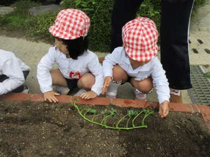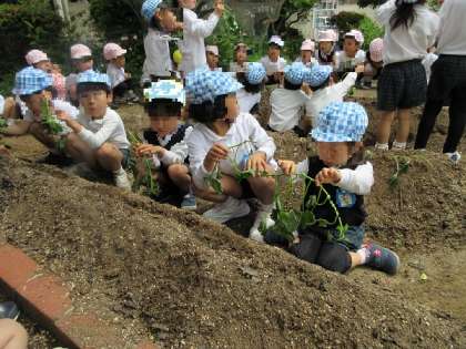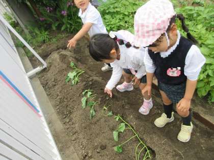 おいしいサツマイモができるといいな 公開日 2024/05/10 更新日 2024/05/10 西中島日記 園庭の畑に、サツマイモの苗を植えました。 細い葉っぱを見ながら、ちょっと不思議そうです。 「サツマイモって、どこにできるの?どうやって大きくなるの?」 「明日になったらおいもになってるかな?」 「出来たらみんなで持って帰りたいね」 さてさて、どんな風にサツマイモができるのかな?どんなおいしいサツマイモができるのかな? 毎日水やりをしながら、楽しみに待ちたいですね。 いいね(0)
