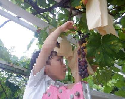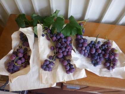1学期の終わりには、まだ緑色だったブドウが、きれいな紫色になりました。