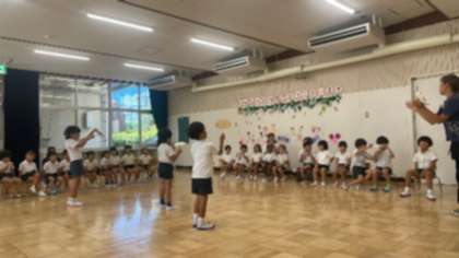 誕生会をしました。誕生児の自己紹介、お家の方と一緒の『おとなこうえん』のふれあい遊び、そら組の手作りプレゼント「クルクル皿まわし」、園長先生からの絵本の読み聞かせなど、みんなでお祝いして楽しく過ごしました。