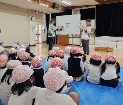 先日、子どもたちが園庭で遊んでいるときに不審者侵入の避難訓練を行いました。子どもたちは速やかに避難し、先生の話を真剣に聞いていました。