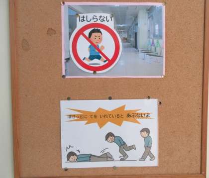 廊下・テラス・部屋で走っていると滑って転んだり、友達とぶつかったりなど、危険です。