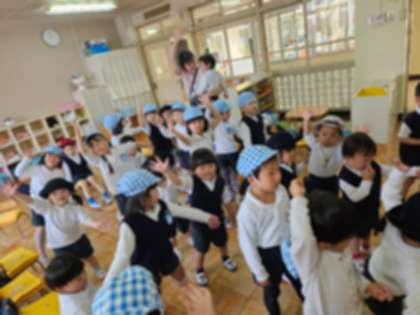 そら組のお兄さん、お姉さんと一緒に『バナナくんたいそう』をしました。
