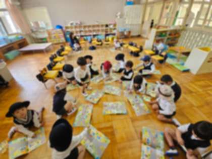 あか組の友達がちょうちょうがうまれてるのを見つけたので、さくら組さんとバイバイすると、元気にお空にとんでいきました。