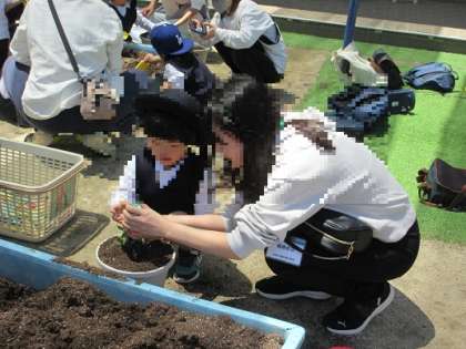 ミニトマト、ピーマン、エダマメ、オクラなど、いろいろな種類の野菜を自分の鉢に植えました。