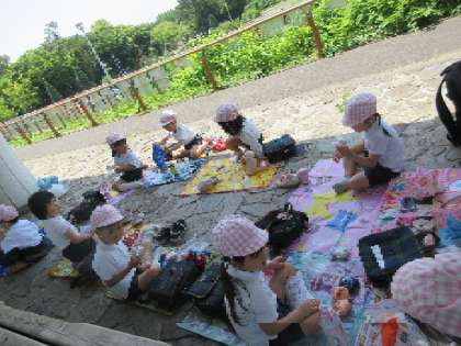 服部緑地に行ってきました!その2 公開日 2025/05/20 更新日 2025/05/20 西中島日記 そら組は、「この色のお花見つかるかな?」といろいろなお花を見つけて、先生や友達見せ合ったり、ジャングル探検(小道の散策)をしたりして、自然に親しみ、遊びを楽しみました。 遊んだ後は、さくら組と一緒にみんなでひと休み。涼しい場所でおにぎりを食べました。 いいね(0)