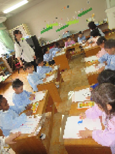 はじき絵でジュースをつくったよ! 公開日 2025/06/05 更新日 2025/06/05 西中島日記 コップの形をした紙に、クレパスでたくさんのフルーツなどをかきました。 その後、上から絵の具で色をのせるとあら不思議!クレパスの線は消えずに残っています! 「it's magic !!」 子どもたちは、絵の具がはじかれていく様子に驚き楽しんでいました。 いいね(0)