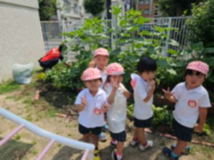 「先生とひまわりどっちが大きい?」「先生〜」「お花はいつ咲くかなぁ?」「夏休みの間かもしれないね」「先生見といてね」と、こんな会話を楽しみました。