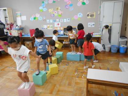そーっとそーっと! 公開日 2022/08/17 更新日 2022/08/17 西中島日記 保育室の端から端まで、ソフト積み木を並べて長い道をつくりました。 落ちないように渡ったり、ジャンプしたりして遊びました♪ いいね(0)