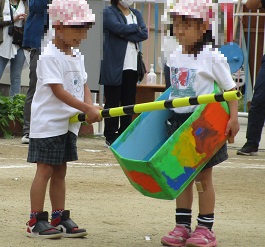 さくら組は、自分がつくった電車に乗っておでかけ♪
