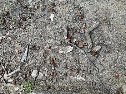 公園に到着すると、たくさんのどんぐりが落ちていました。