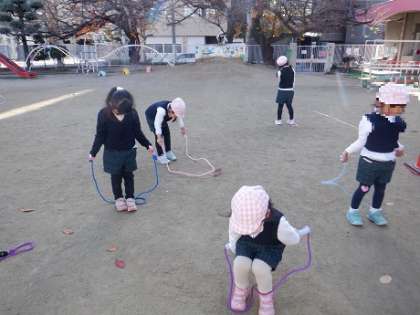 前跳びでは、縄を前の方に回して跳ぶということを知らせながら、一人一人の姿を認めることで、「やってみよう!」という気持ちをもって取り組むようになってきました。