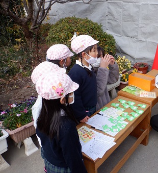 今までは、年長児(そら組)が未就園児の子どもたちと関わって一緒に遊んでいましたが、3学期からは、年中組(さくら組)が受付をしたり、関わったりしながら過ごしました。