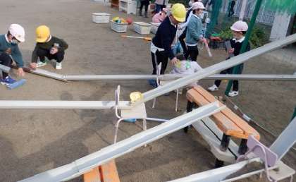そら組が行っていたことをさくら組が行い、バトンタッチしていくことで、進学、進級に向けての気持ちを育てていくようにしています。