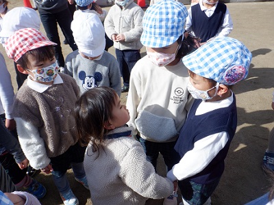 幼稚園の子どもたちは、未就園児の子どもたちと一緒に遊びたくて、すべり台や砂場へ一緒に行っていました。
