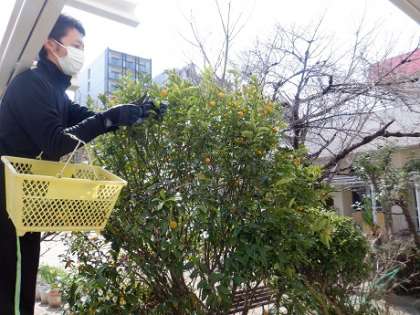 「どうやった食べるの?」と食べたことのない子ども達もいましたが、「皮のまま食べれるよ」と知らせると、「え〜!」「みかんのいい匂いがするね」と楽しみにしていました。