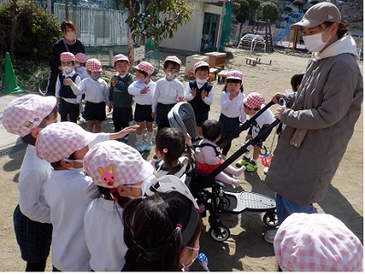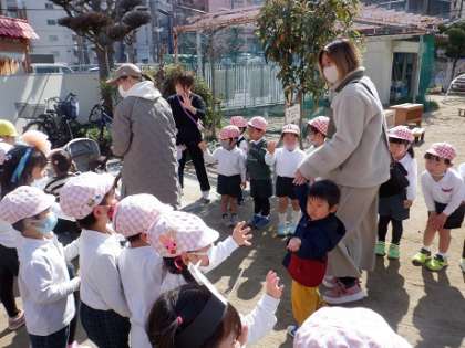 あか組、さくら組の子ども達で、花道をつくってお別れをしました。
