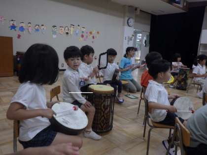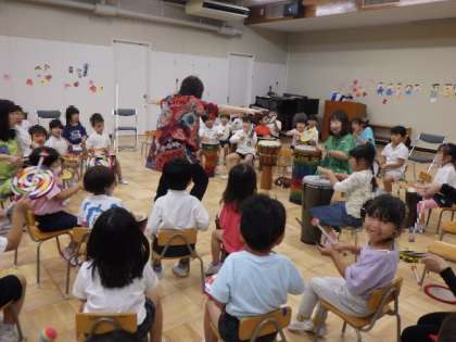 ドラムサークルファシリテーターの「ぽむるーじゅ」さんに来園していただき、ドラムーサークルを楽しみました。