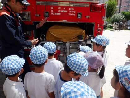 子どもたちは、その間、消防車の見学をさせていただきました!