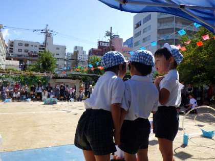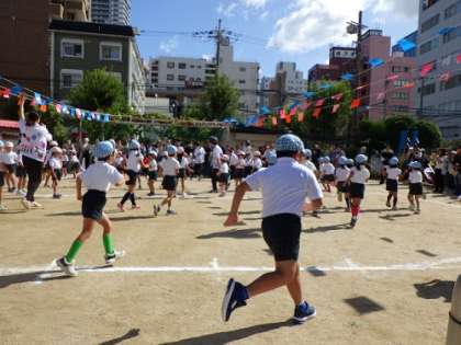 青空に恵まれ、おうちの皆様に見守られる中、5歳児そら組の司会で、運動会が始まりました。