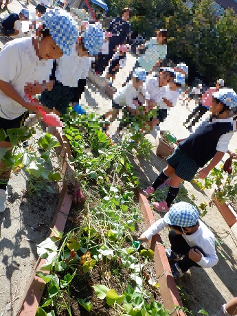 土の感触、お芋の重さ、お芋のつるの硬さ など