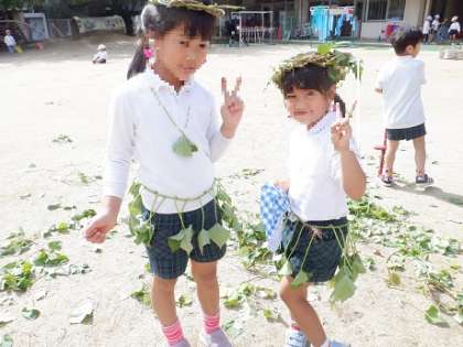 子どもたちの手にかかると、お芋のつるもいろいろなものに変身します☆