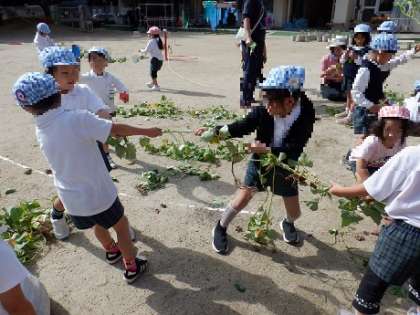 お芋のつるを力いっぱいひっぱって、「うんとこしょ!」