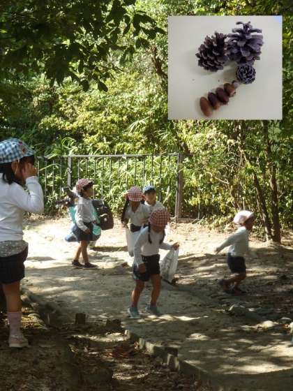 園外保育で、千里南公園に出かけました 公開日 2023/10/26 更新日 2023/10/26 西中島日記 公園に着くとドングリやマツボックリなど、木の実がいっぱい!「ここに隠れてたよ」「大きいドングリは、あっちにあるから来て!」と、子ども達は、あっという間にどんぐり探しの名人になりました。山の中で崖のぼりにも挑戦!秋晴れに恵まれ、自然を体いっぱい感じました。 いいね(0)