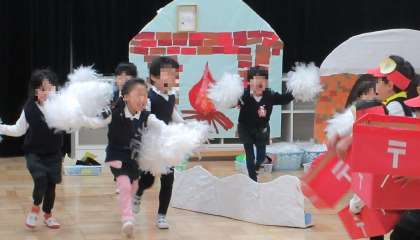 劇遊びでは、動物になって表現したり、友達と一緒に話すことを楽しむ姿が見られましたね。風邪をひいたゆうびんうさぎを心配したり、届いた郵便を見て喜んだりと、登場人物の気持ちを表現する姿が見られました。