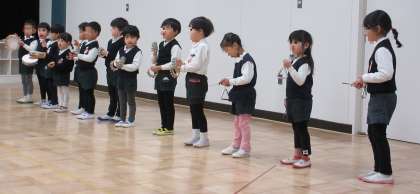 また、歌や楽器遊びは、リズムを感じながら歌ったり、楽器を鳴らしたりすることを楽しんでいました。