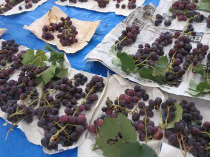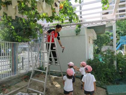 幼稚園のぶどうが美味しそうな色になったので収穫しました。