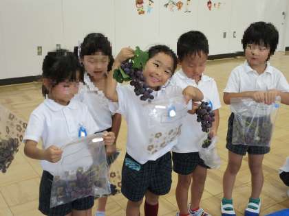 収穫したぶどうを遊戯室に並べると、50房近くあり、子ども達は自分で好きなぶどうを選んで持ち帰りました。