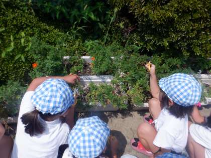 マリーゴールドの花や葉を集めています。 さあ、何になるでしょうか。 お楽しみに・・・