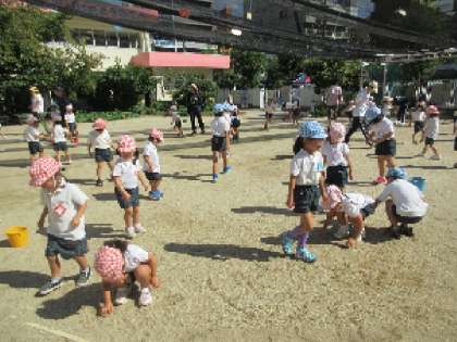 久しぶりに園庭で体操をしました!! 公開日 2025/09/19 更新日 2025/09/19 西中島日記 やっと朝の園庭が涼しくなってきました。 久しぶりに園庭で、みんなで体操をしました! これから体を動かす心地良さや、青い空の美しさも感じてほしいです。 そして、園庭の整備として小石拾いもみんなでしました。たくさんの小石が集まり、それを一つにまとめたバケツを持って「めっちゃ重たい〜」「僕も持たせて 重っ!!」とみんなが集めた小石の重さを感じていました。 いいね(0)