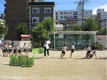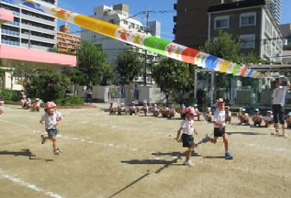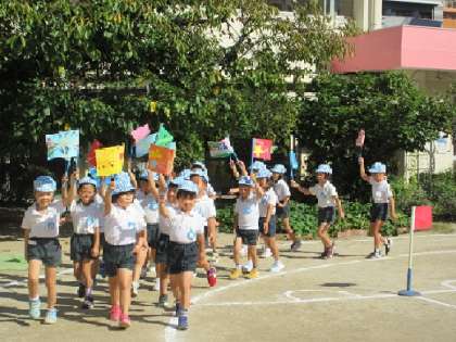 もうすぐ運動会です。今日は幼稚園のみんなでうんどうかいごっこをしました。