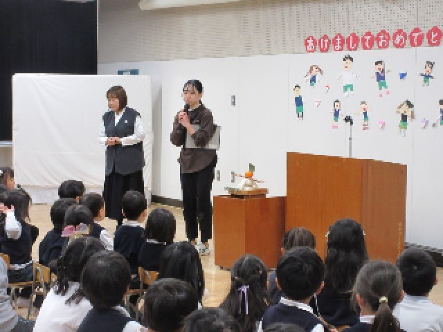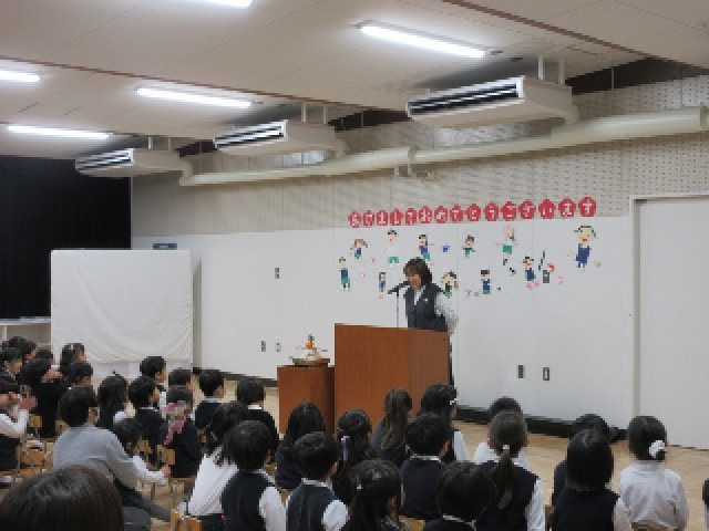 始業式では、冬休みの生活を振り返ったり、鏡餅の話を聞いたりしました。