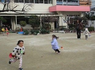 園庭に出ると、子どもたちはたこを持って元気に走り出しました。