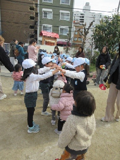 たくさんのお友達が幼稚園に遊びに来てくれて、幼稚園の子どもたちも嬉しそうでした。