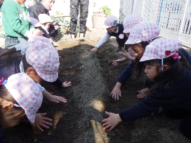 植えた後には、「大きくなってね」「おいしくなーれ」と水やりをして、成長を楽しみにする姿も見られました。