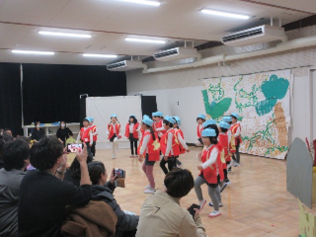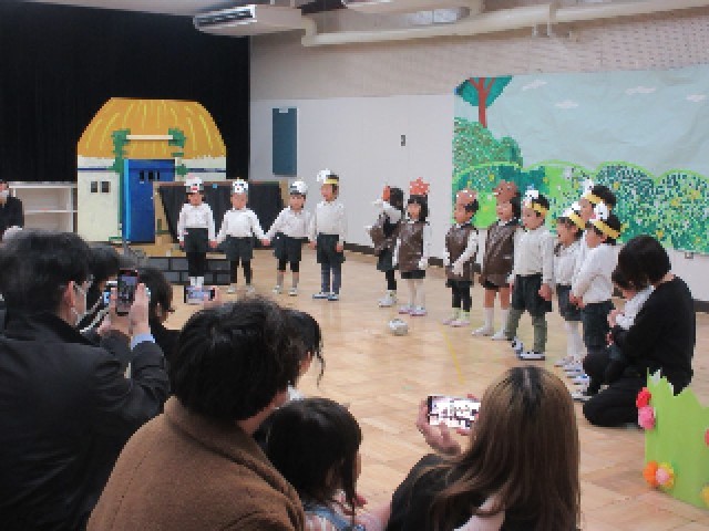 今日は生活発表会でした。子どもたちは、お家の人やたくさんのお客さんの前でクラスの友達や先生と劇遊びや歌・合奏、生活遊びを楽しんでいました。