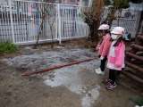 教職員が側溝の中の土を掃除をしていました。 工事ごっこが大好きなさくら組の子ども...