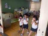 預かり保育で避難訓練をしました。保育室で遊んでいる時に、保健室から火事が起きた想...