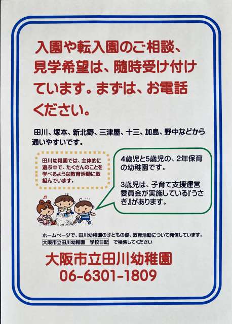 途中入園も可能です。ご相談ください。06−6301−1809