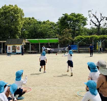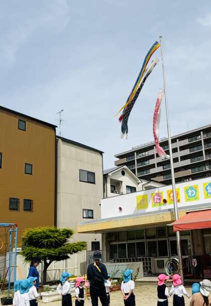 元気いっぱい走ったり、みんなで音楽に合わせて体操をしたり、体を動かして楽しみました。子どもたちが体を動かして遊び始めるとこいのぼりも泳ぎ出しました。