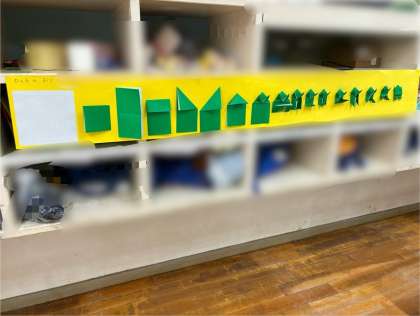 16回折るとは何かなと保育室を覗くと、折り方の工程が16もある掲示物が貼ってありました。