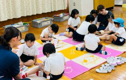 プール遊びの後は、体を拭いて着替えた後、図書館から貸していただいている絵本を見て休息しました。