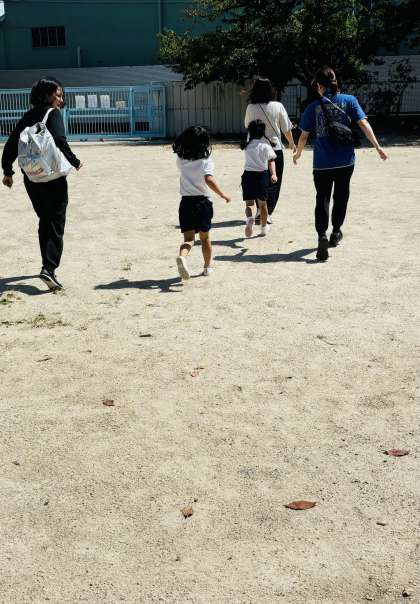 今日は、預かり保育の時間に幼稚園の近隣で火災が起こった想定で、避難訓練をしました。指導員と一緒に、2階の保育室から園庭へ速やかに避難できていました。どのような状況でも、安全に避難できるように、様々な避難訓練を行っています。