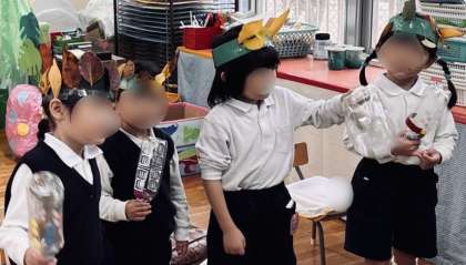 幼稚園に戻ってから、葉っぱを上に高く投げてひらひら落ちてくるのを楽しんだり、葉っぱを貼り付けた冠をつくったり、いろいろな遊び方をしていました。