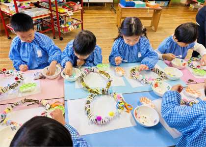12月になり、リースやツリーの飾りをつくりながら、今年も幼稚園にサンタさんが来てくれるかなと楽しみにしている子どもたち。どこかでサンタさんが見てくれているといいね。