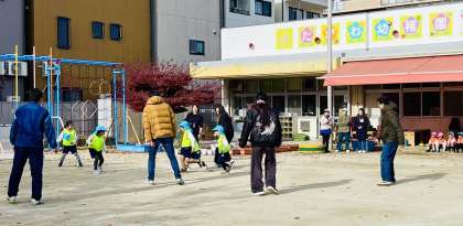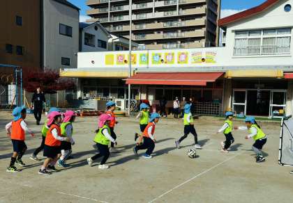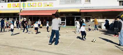 サッカーのコーチに来ていただき、親子で体を動かして楽しみ、子どもも保護者も笑顔いっぱいになりました。