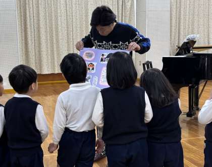 地域の音楽家の先生に来ていただき、歌唱指導がありました。今回が今年度最後ということで、最後にありがとうの言葉と一緒に、絵の手紙を渡して気持ちを伝えました。